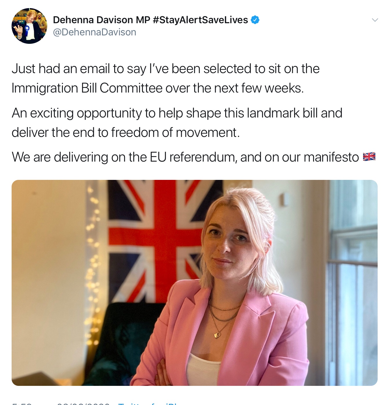 The freedoms underpin the Single Market, the Customs Union and the rationale of the European Union. Although some non EU countries also adopt the four freedoms Britain has said it will not do this and both the Home Secretary and MPs like Ms Davison boast about our abandonment of them – especially Freedom of Movement.