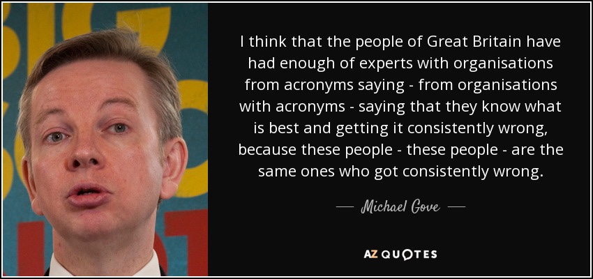 When Michael Gove made his famous remark demeaning experts I was puzzled – even for Gove it seemed a strange, populist load of intellectually deficient detritus. Now I realise it was a statement of Government policy.