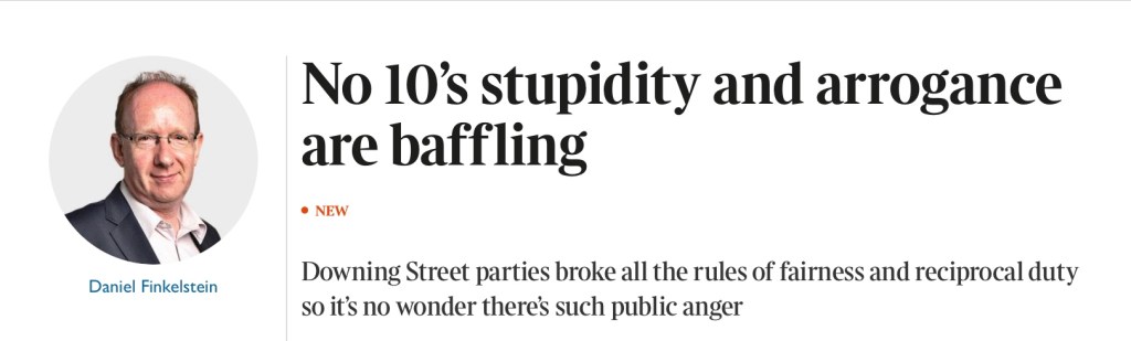 Danny Finklestein is of course right. Partygate is mind-blowingly stupid and the people responsible for it were unbelievably arrogant. But it’s it’s quite a long time ago now isn’t it? And quite a few people were involved including, it appears, one or two whose job it was to tell us what’s going on.