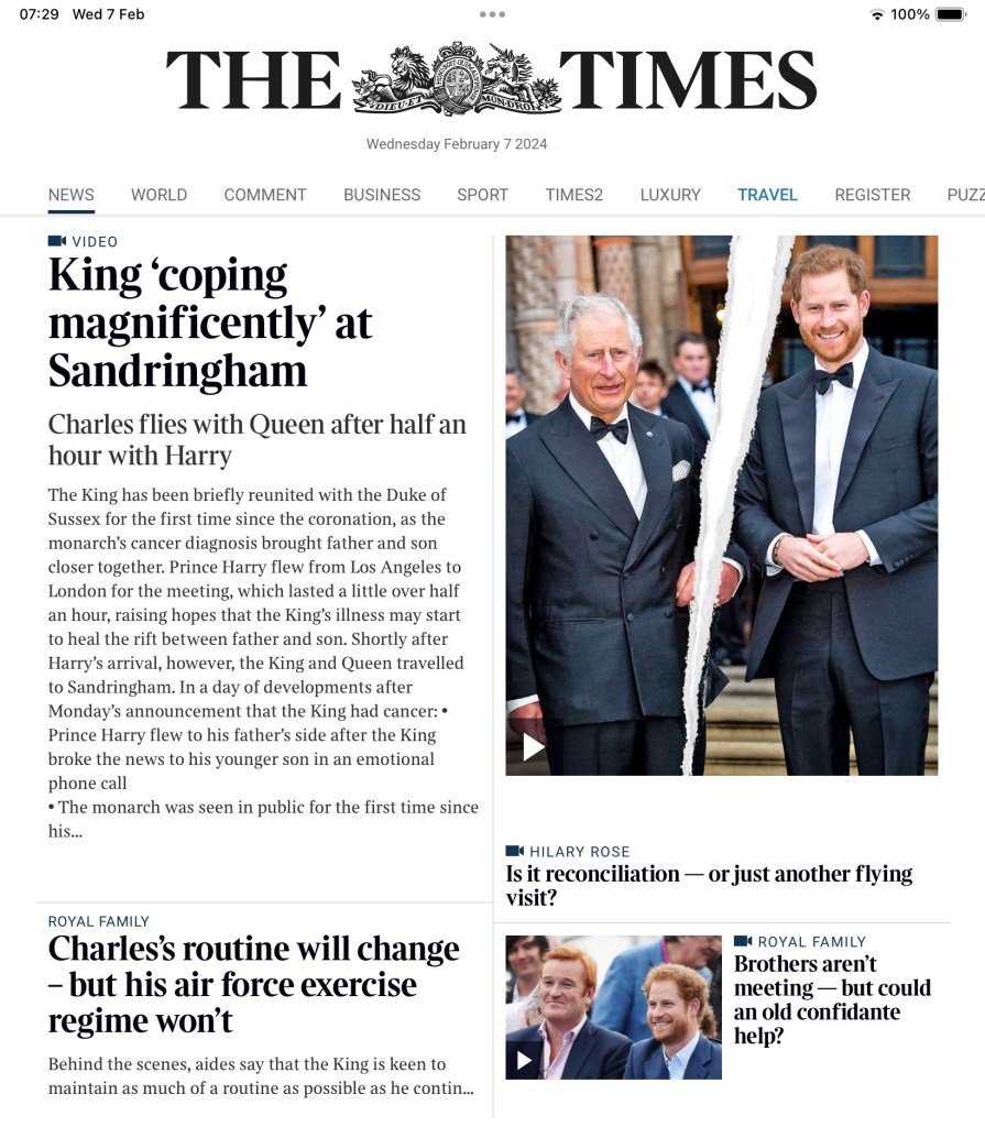 This is the front page of The Times today (that’s in what was once referred to as a “newspaper of record”). Is the Monarch’s illness really such an important story that it warrants such blanket coverage?