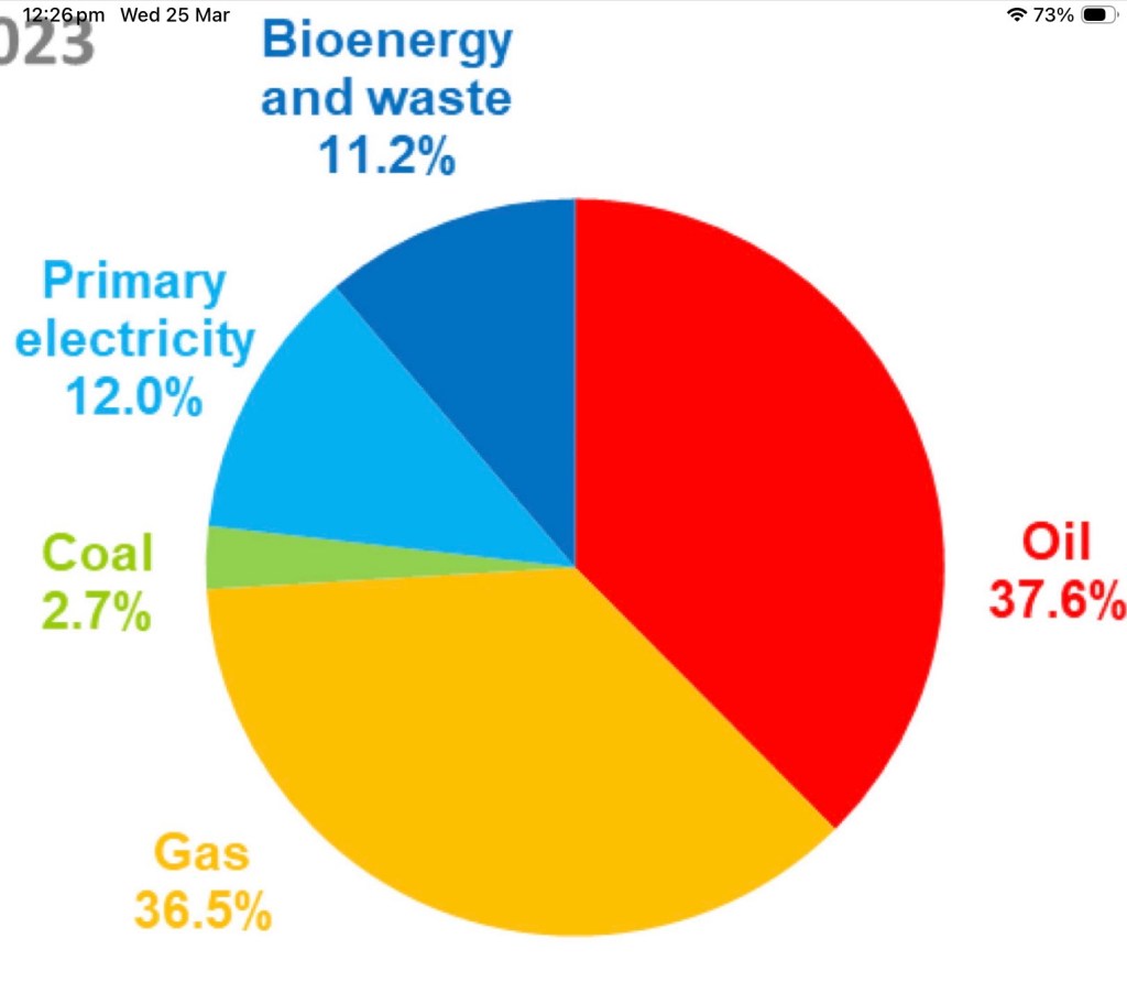 UK Primary Energy consumption 2023. “Primary Electricity” is mainly Wind, Solar and Hydro power.